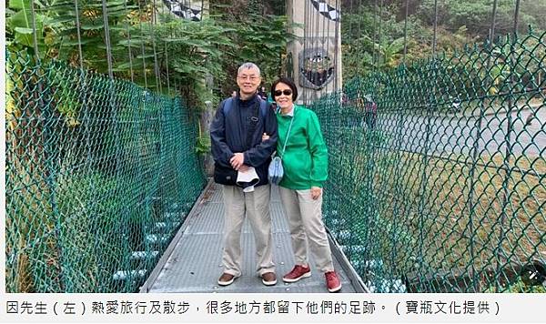 因先生(左)熱愛旅行及散步,很多地方都留下他們的足跡。(寶瓶文化提供)