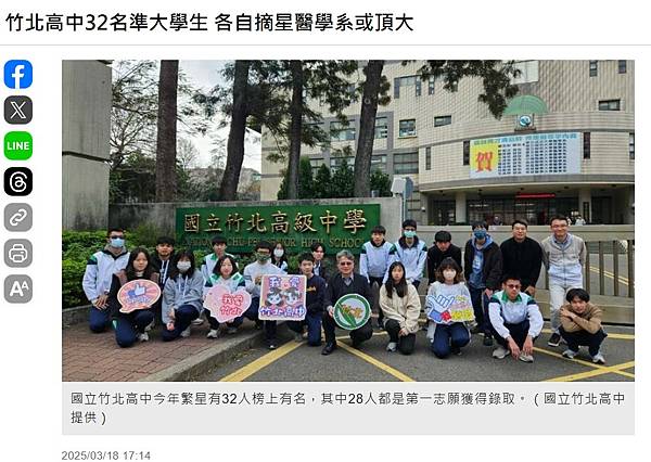 竹北高中32名準大學生 各自摘星醫學系或頂大 - 生活 - 自由時報電子報