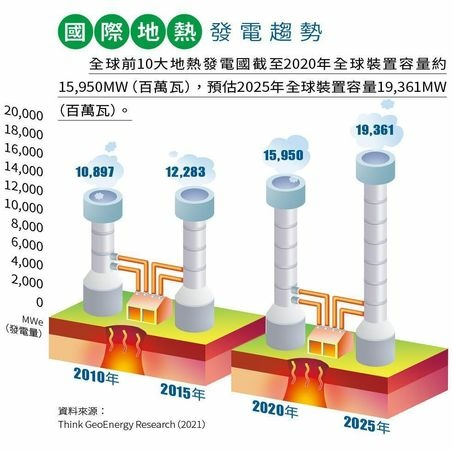 台灣早在一九七○年代,政府即因應能源危機,投入地熱發電,但因效率不佳,停擺近二十年。工研院地熱工程師李毓仁評估,台灣地熱發展起步早,因開發中斷,落後其他國家,如今技術漸成熟,可相對降低投注成本,提高經濟效益。