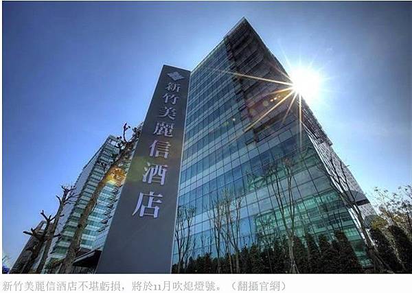 ▼新竹美麗信酒店將熄燈(截自美麗信酒店官網)