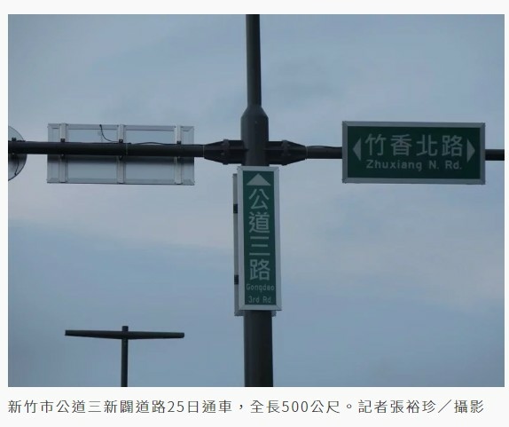 市府指出,林智堅市長上任以來,積極推動「一環二線三網」交通建設計畫,公道三路作為關鍵「一環(環快速道路系統)」,全長500公尺,串聯竹光路至景觀大道,作為台68線通往國3的重要道路,亦是台1線替代道路,紓解市區與道路交通壅塞問題,更可加速西區與香山區的區域發展,全線預計25日早上10點典禮後正式通車。影/竹市「公道三」周六將通車 蔡英文總統視察肯定 | 桃竹苗 | 地方 | 聯合新聞網 https://bit.ly/3zYe066