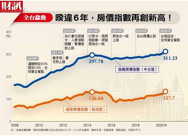 繼2014年的高點之後,今年台灣房價指數再創下歷史新高。這波買氣來得又急又快,房市亂象死灰復燃,逼得政府不得不出手;而且,台灣人口進入負成長,市場長期恐供過於求,都讓熱絡的房市蒙上一層陰影。據研究,今年房市的八大資金潮是支撐房地產熱況主因,而政府也開始針對房地產市場的政策有新規劃與脈絡。2020房價指數再創新高真相:八大資金潮支撐熱況 https://bit.ly/3neTHHL
