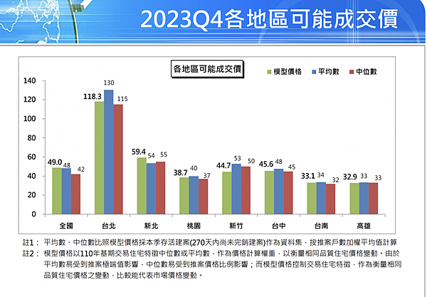 樣本分區:區分為台北市、新北市、桃園縣、新竹地區、台中市、高雄市及台灣地區等七項。其中,台灣地區項目包括全台各地區交易樣本。