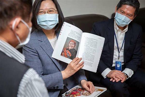 ▼▲ 蔡英文今日拜訪文面傳統保存者林智妹,期盼國人認識原住民族的文面文化。(圖/總統府提供)
