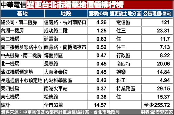 | 中華電信變更台北市精華地價值排行榜 |