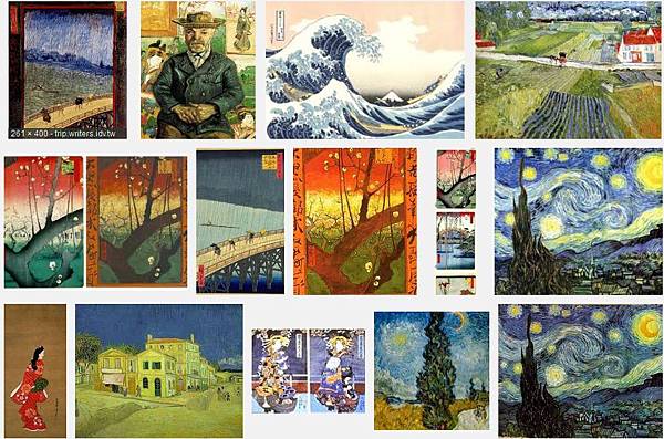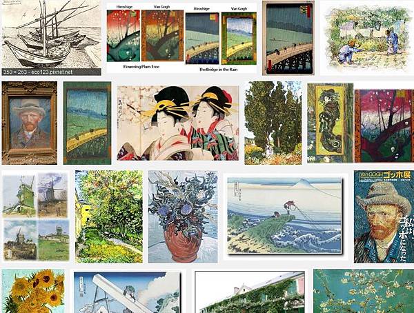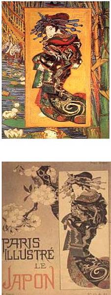 又因為西方各國會由日本進口茶葉,而日本茶葉的包装纸,常會印有浮世繪版畫圖案,因此 許多當時代的西方印象派畫家,亦受其風格影響不少。1865年法國畫家布拉克蒙(Felix Bracquemond)將陶器外包装上會的《北齋漫畫》介绍给印象派的友人時,就引起許多回響。而其中,梵谷又是著名畫家中,受浮世繪影響最深的人。