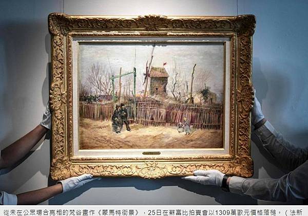 〔即時新聞/綜合報導〕荷蘭後印象派畫家梵谷(Vincent Van Gogh)在1887年春天繪製的《蒙馬特街景》(Scène de rue à Montmartre),完成後從未在公開場合展示過,3月25日登上蘇富比拍賣會,以1309萬歐元(約新台幣4億4122萬元)落槌。