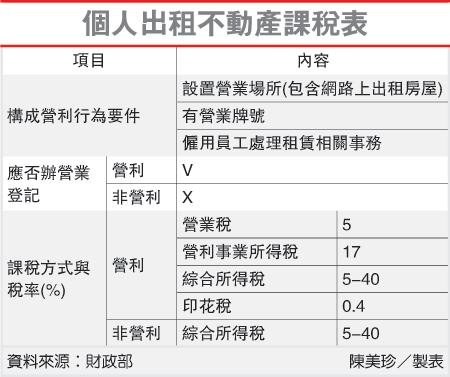 財政部表示,個人出租房屋取得租金收入時,應併入取得年度的綜合所得總額申報課稅。財政部指出,房東如有短漏報租金收入,在國稅局啟動調查前自動補報,可以援用稅捐稽徵法第48條之1規定加計利息補稅、免再處罰;否則就會加處三倍以下罰鍰。