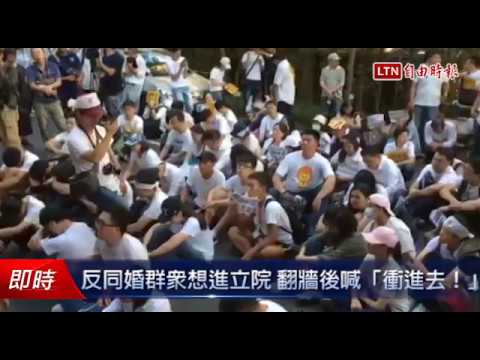 反同婚群眾想進立院 翻牆後喊「衝進去!」