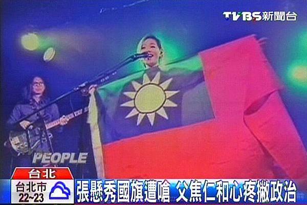 〔記者李宇欣、黃明堂/綜合報導〕針對歌手張懸秀國旗事件,行政院長江宜 樺昨指出,他很遺憾張懸拿國旗、以台灣為榮的行為,卻被中國民眾敵意對待,顯見中國人不了解台灣;江還說,張懸並非單一事件,他過去在學界與對岸交流時, 中國主辦單位也常將他所任教的「國立台灣大學」逕自改為「台灣大學」,面對這種對待,標準做法就是抗議,無論民間或政府都一樣。