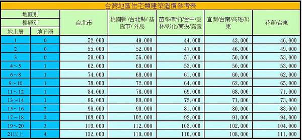 台灣地區住宅類建築造價參考表 - https://goo.gl/Ryu7xR