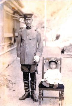 舊草嶺隧道日籍工程師吉次茂七郎和女兒吉次澄枝合影。