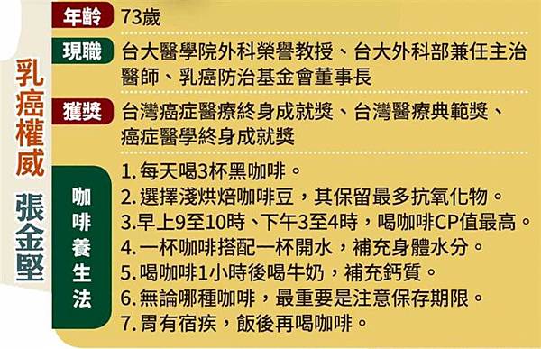 「閱讀500多篇論文之後,我發現咖啡對健康有許多好處。」其中最重要的就是抗癌,根據一個全球性的研究顯示,追蹤兩百多萬人近14.3年之後,結果發現喝咖啡者的癌症風險下降13%,整體來說,每增加一杯咖啡,可降低癌症風險3%。 https://is.gd/xWlqoe