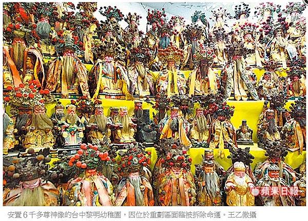 安置6千多尊神像的台中黎明幼稚園,因位於重劃區面臨被拆除命運。王乙徹攝