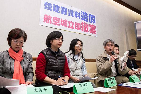 航空城自救會昨(23)日在民進黨立委尤美女(左1)、林淑芬(左2)陪同下,指控內政部營建署涉嫌偽造文書,並要求都委會撤銷航空城計畫案。(記者陳柏州/攝影)
