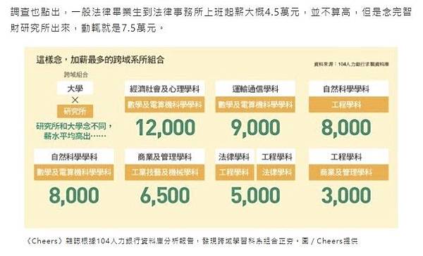 法律系畢月薪4.5萬 跨領域多念這個變7.5萬 | 大學研究所 | 文教 | 聯合新聞網 http://tinyurl.com/y6nwb5l3