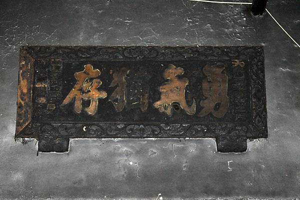 終於在二樓的壁堵找到古廟舊跡,信徒捐獻的壁堵雕飾,上面刻著「同治十三年春月穀旦」。同治13年,是台灣近代史 重要的一年。這一年,日本入侵南台灣,爆發「牡丹社事件」;清廷急派欽差大臣沈葆楨赴台交涉及主持防務; 事平之後,在沈葆楨建議之下,清廷強化台灣的防務及行政組織,將淡水廳升格為「台北府」,隨後開始 規劃興建台北城。台北城的正式崛起,可說是源自於同治13年。