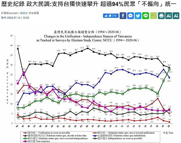 歷史紀錄 政大民調:支持台獨快速攀升 超過94%民眾「不偏向」統一 | 政治 | 新頭殼 Newtalk