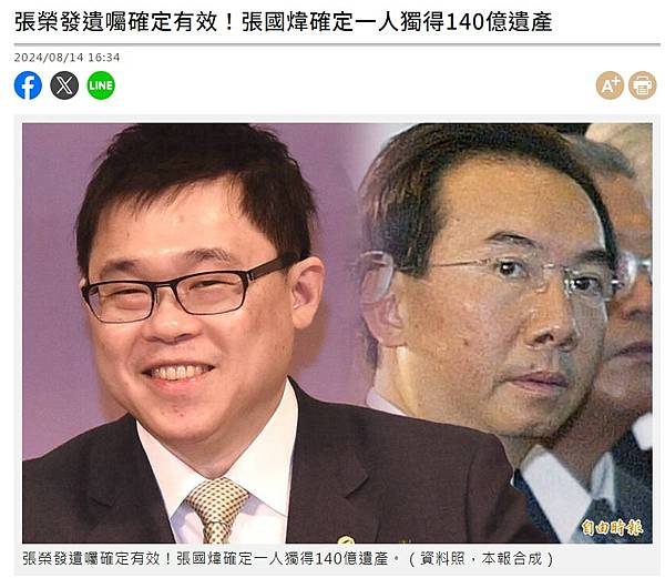 張榮發遺囑確定有效!張國煒確定一人獨得140億遺產 - 自由財經