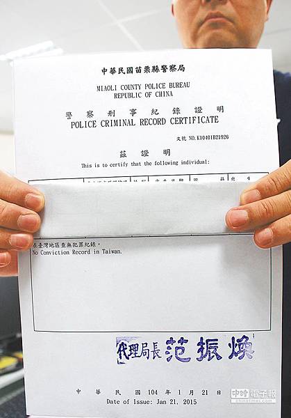 苗栗縣警局表示,新版個人資料保護法於2012年10月上路,許多公司行號像科學園區、彩券經銷商、保母、客運司機、保全等,皆要求應徵工作者需附上刑事紀錄證明。若應徵者有前科素行,較不易獲得職缺,這也是為了保護公司或服務對象,不得不事先做「身家調查」與安全控管。