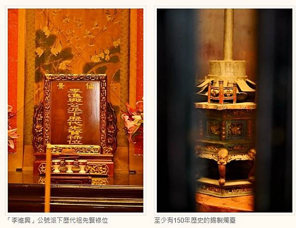 李楷瑞說,和祖師廟比鄰的宰樞廟,是早期來自福建安溪李姓族人的信仰中心,廟裡除供奉玄天上帝外,一旁還分祀李姓祖先的先賢祿位,惟宰樞廟並非宗祠而是公廟,定位特殊。
