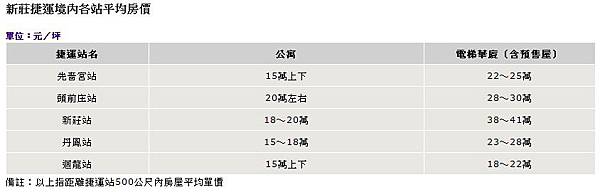 備註:以上指距離捷運站500公尺內房屋平均單價