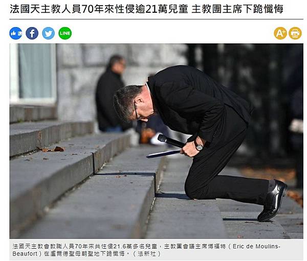 法國天主教人員70年來性侵逾21萬兒童 主教團主席下跪懺悔 - 國際 - 自由時報電子報 https://bit.ly/2YmIIoY