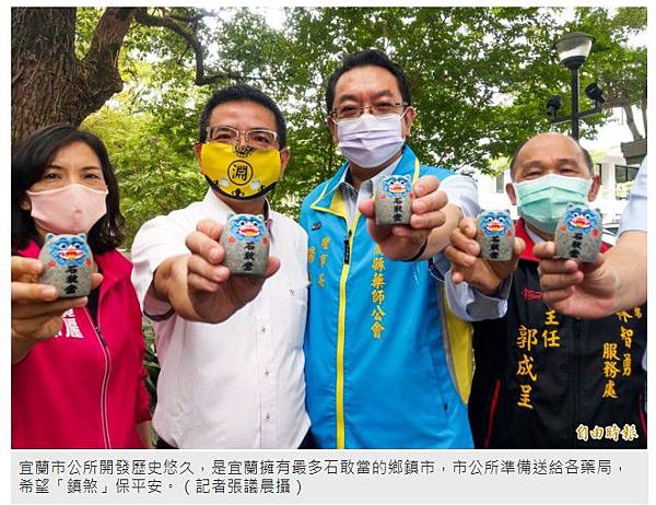 因武漢肺炎疫情肆虐,人人出門必備口罩,健保特約藥局則成為民眾購買口罩最大通路來源,但過去偶爾傳出民眾因口罩問題與藥師起口角,市公所準備石敢當,由宜蘭縣藥師公會送給各藥局,希望借助石敢當力量,為藥局鎮煞。