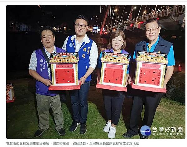 右起南崁五福宮副主委邱垂境、謝佳秀里長、錢龍議員、卓宗賢里長出席五福宮放水燈活動