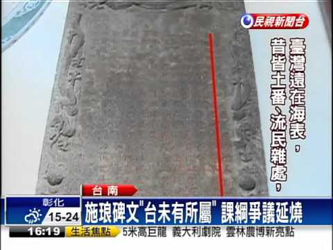 教育部上月通過修正高中社會領域課綱,引發「去台灣化」爭議,讓綠營人士大為不滿,在台南就有市議員指出,在大天后宮有一塊清代名將施琅寫的碑文,開章明義就說「台灣未有所屬」,証明台灣自古以來就不是中國的,而研究台灣史的學者也認同這樣的看法 。