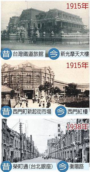 像現在台北車站前的地標新光三越摩天大樓,日治時代是台灣最早的西式旅館「台北鐵道旅館」,當時旅館內有最知名的西洋料理,也是當時台北最豪華的建築之一。這棟老建物二戰末期在台北大空襲中被美軍炸毀,如今改建成摩天大樓;現在只要利用中研院設計的App就能重現。中研院數位文化中心專案經理黃冠華表示,為了確定台北鐵道旅館大門到底是面對忠孝西路還是館前路,團隊進 行了很長時間的考究,直到翻出台北鐵道旅館的工程圖,才確定是坐東朝西。