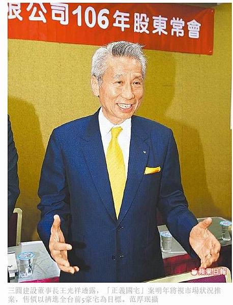 三圓建設董事長王光祥透露,「正義國宅」案明年將視市場狀況推案,售價以擠進全台前5豪宅為目標。范厚珉攝