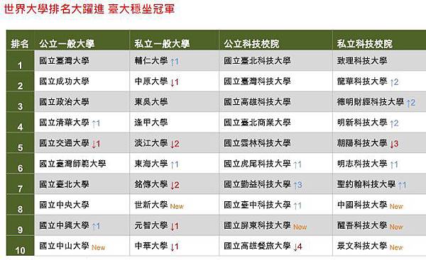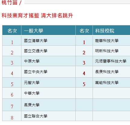 在私立科技校院部分,致理、朝陽則穩坐冠、亞軍,文藻外語大學一口氣躍升5名,擠進前3名,龍華、德明、聖約翰排名也都有斬獲。