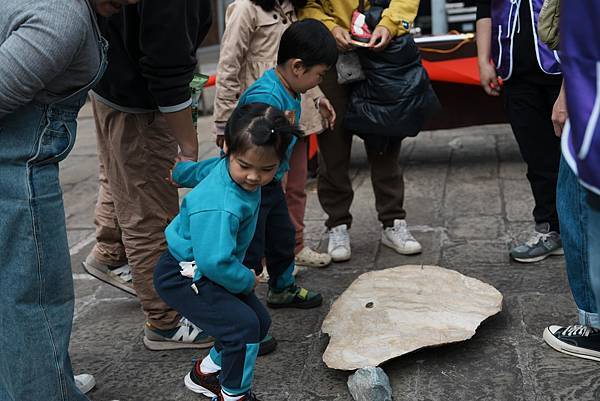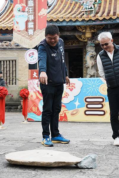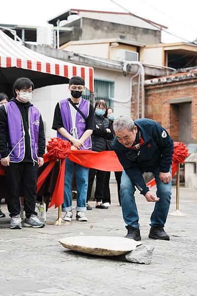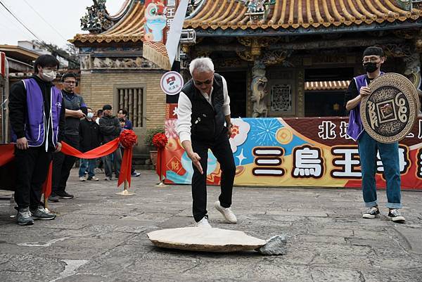 這是一項傳統客家年節活動「跌三烏」,使用銅錢與石板進行。目的是推廣客家文化,並為不同年齡群的參與者提供樂趣。活動地點為新竹縣北埔鄉慈天宮廣場。
