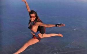 熱愛極限運動的義大利超模曼奇諾(Roberta Mancino),近期挑戰全裸玩空中跳傘。(圖片擷取自鏡報)