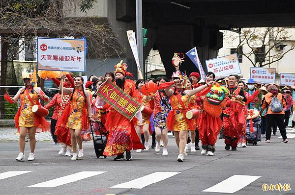 〔記者李容萍/桃園報導〕2024桃園市龍潭迎古董接財神嘉年華,繼昨日五榖爺出巡接財神,今天下午舉辦迎古董踩街活動在龍潭街頭動起來,計有30組團隊、逾1000人爭奇鬥艷以各式逗趣裝扮和道具踩街,沿途敲鑼打鼓,熱情搖擺大秀才藝,圍觀民眾大呼過癮。市長張善政表示,龍潭迎古董接財神踩街活動,已成為在地指標性活動,今年活動由龍潭區公所及龍元宮合辦,參與踩街隊伍報名踴躍、成員年齡層廣泛,市府會努力延續這項傳統,發揚在地文化。