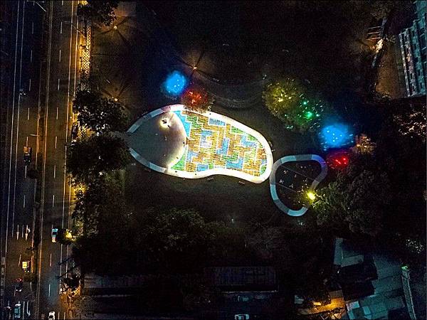 「燈龍迷宮」夜間空拍圖,繽紛壯觀。(記者張軒哲翻攝)