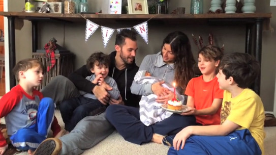 喬西和羅賓帶席安回家,和4位哥哥團聚,大家都爭著要抱他,還舉辦慶生派對(上圖),同時也拍下第一次親他,穿父子裝(下圖),一點一滴記錄和席安的相處時光。媽媽羅賓溫柔地說,一個輕觸、一個撫摸都會讓小小的席安感到喜悅,有時他也會張開虛弱的眼睛,好奇地看著世界。