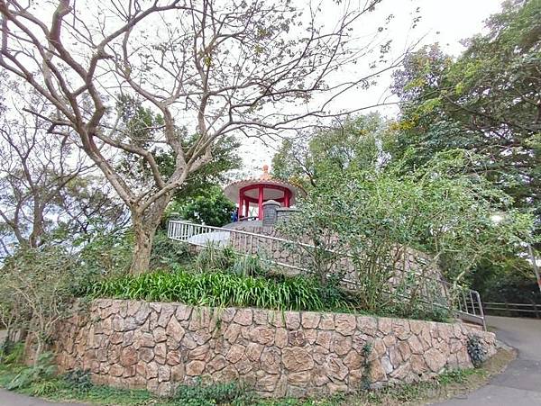 路邊的涼亭則是休息的地方,不過抬頭往上看,那個電線桿及電線,還是有點突兀。