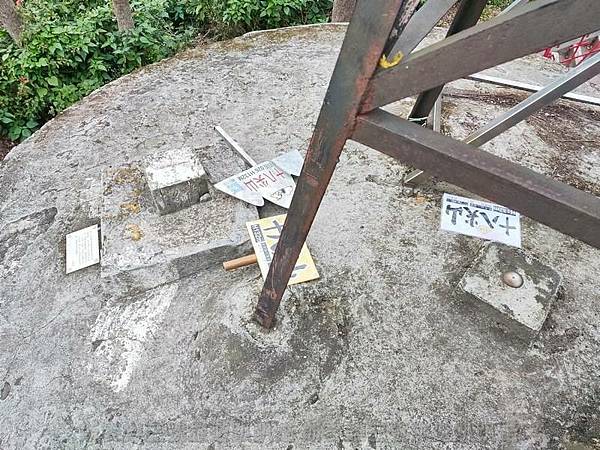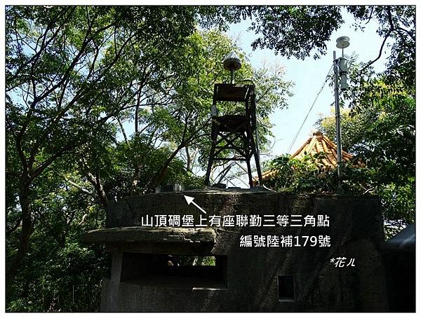 到達涼亭後,三角點不在涼亭內,而要繼續走到後方,一個建築物上面,才會找到三角點。
