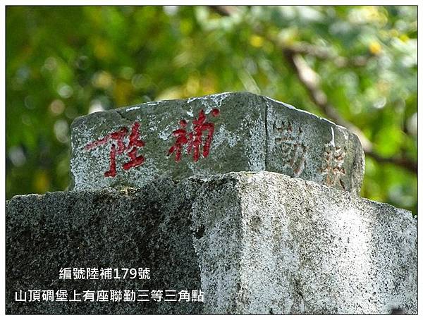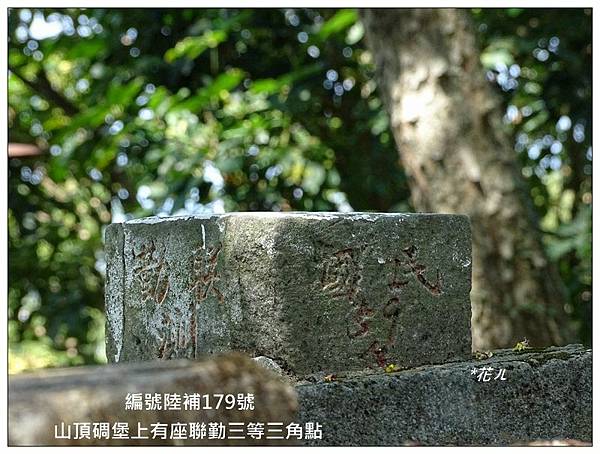 十八尖山H132m 聯勤陸補三等三角點179號三等三角點58號(遺失)、二等三角點1066號(遺失)、台灣小百岳編號26屬山系,雪山山脈加裡山系,基石在碉堡上方