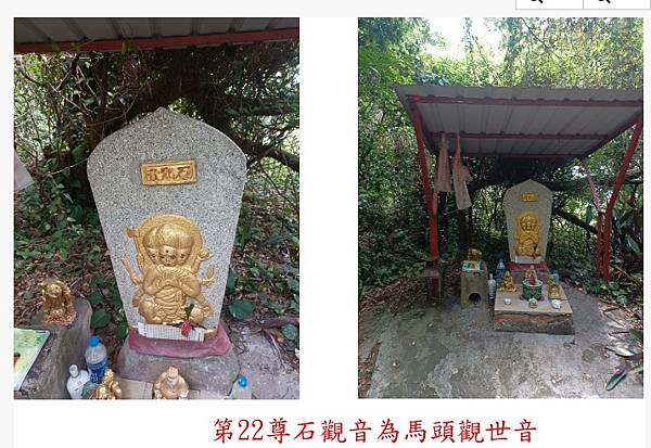 三面造型,手持多種法器,坐姿 。 | 右手撐頰、拿佛珠,左手持檀香爐,後有蓮花,單腳趺坐。 為於新竹高中後圍牆旁。 | ||