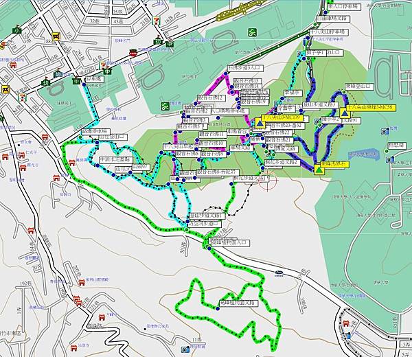 路邊的十八尖山導覽地圖,其實叉路不多,今天要找的是十八尖山三角點,也就是國父紀念亭的位置。