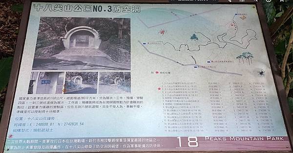 二戰時期,新竹也變成盟軍轟炸的目標,於是日本人也在十八尖山上修築防空洞及軍事設施。