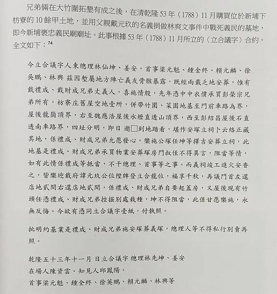 契約文中之姜安;1787年(乾隆53年)發起興建新埔枋寮義民廟的粵東總理姜安為姜勝智
