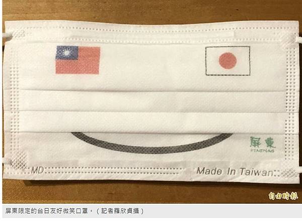 屏東限定的台日友好微笑口罩。(記者羅欣貞攝)