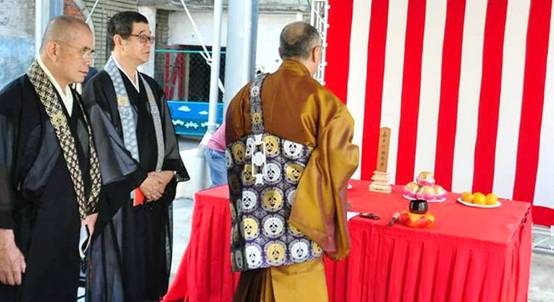 「逍遙園」的創建者大谷光瑞身分特殊,具備本願寺教派法主及天皇姻親身分,因此今天的開工祈福祝禱儀式,浄土真宗本願寺派法盛寺住持福井孝尚,專程跨海來台參加,與日本新瀉大學教授柴田幹夫、台中光照寺住持陳一信,一起祈福祝禱。