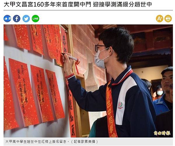 大甲文昌宮160多年來首度開中門 迎接學測滿級分趙世中 - 生活 - 自由時報電子報 https://bit.ly/2U72EHr