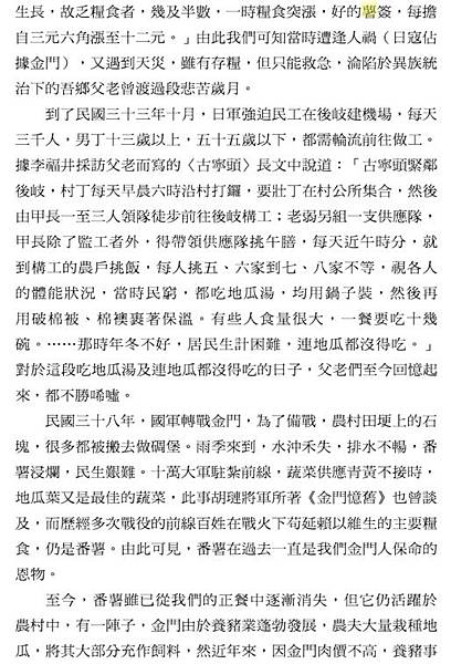 蕃薯據說是由葡萄牙人在明末才傳入中國的,但中國人對於它的愛好,比對薯仔更甚。我想這原因,可能是由於它們從田裡掘起來就可以往嘴裡送,成為貧民的恩物,是雜糧之中最普遍的一種,並且是荒年惟一的救星。
