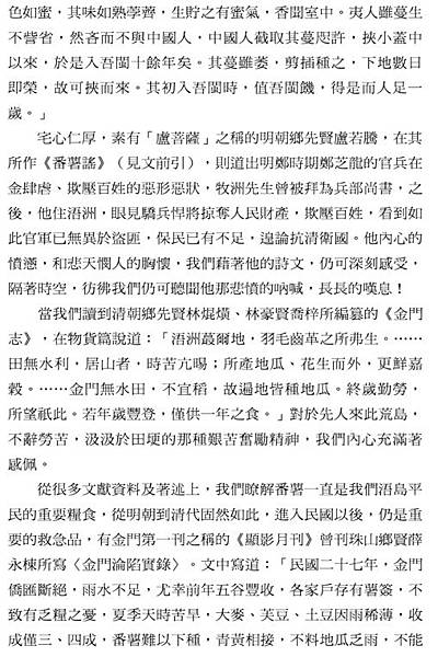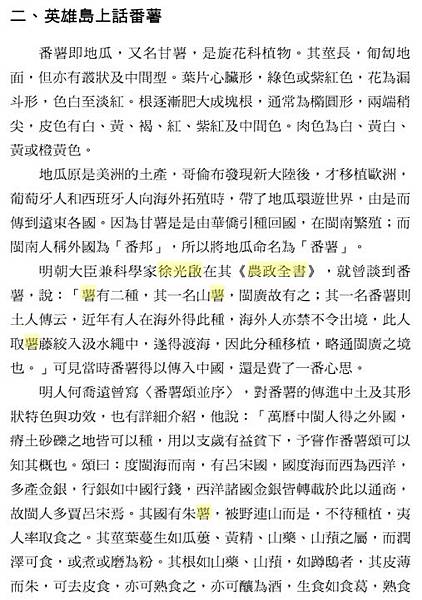 中日台記載蕃薯出現的時間,其實非常非常接近,因為呂宋島華僑陳振龍偷運「朱薯」賑濟福建旱災,將蕃薯輸入中國生根,也不過是中國明萬曆廿一 (1593) 年的事。以當時台灣原住民與南島的海上活動,以及蕃薯很早就現蹤東部、成為原住民重要糧食之一的情況來看,蕃薯登陸台灣的時間或許不晚於中國?